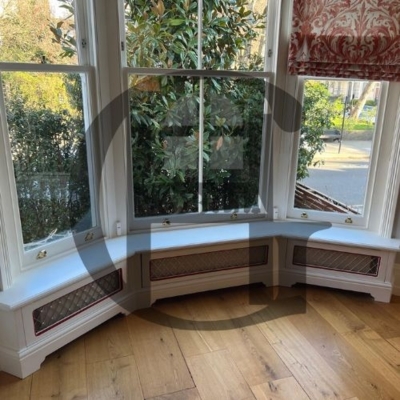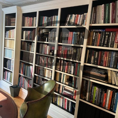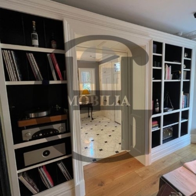 This project showcases bespoke joinery at its finest: a smartly designed wardrobe, classic home library, and decorative radiator covers with intricate detailing.